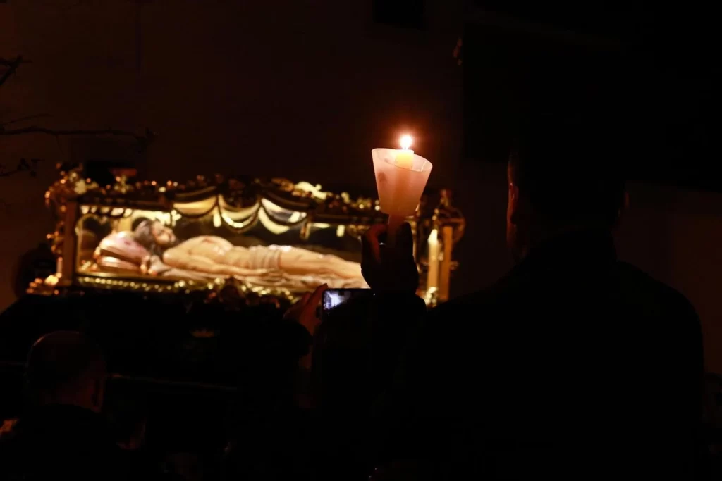 La imagen del Santo Cristo Yacente llegó a Ibiza desde Valencia en 1944, año en que procesionó por primera vez como única cofradía. Su fundación fue promovida por el obispo Antonio Cardona Riera, quien otorgó indulgencias a sus hermanos. Inicialmente, solo podían ser miembros hombres casados.